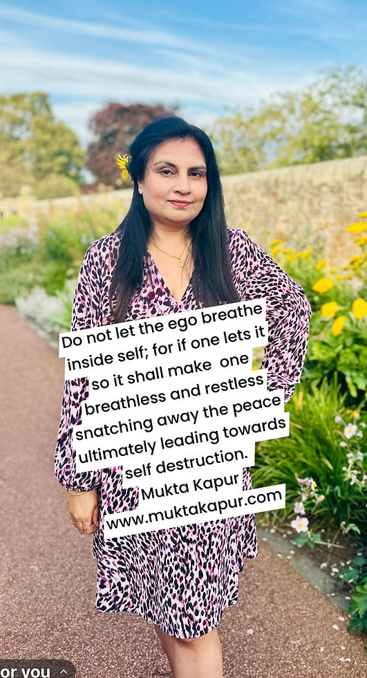 Quote no 168Mukta KapurAug 251 min readDo not let the ego breathe inside self; for if one lets it so ; it shall make one breathless and restless snatching away the peace ultimately leading towards self destruction.Mukta Kapur